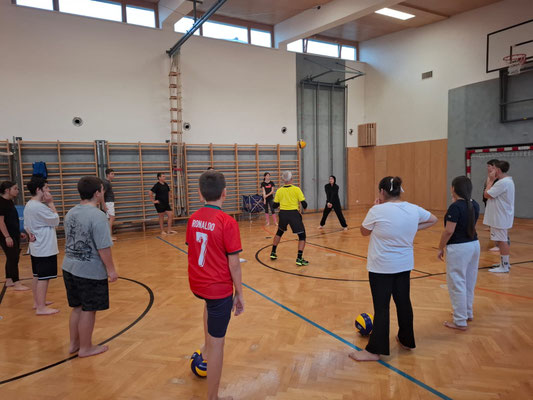 Im Rahmen des Turnunterrichts hatten die Schüler:innen der 4b-Klasse die Möglichkeit, ein Volleyballtraining mit einem ehemaligen Bundesligatrainer zu absolvieren. Die 4b-Klasse war mit vollem Eifer bei der Sache und konnten die Tips des Profis gut annehmen. Einen tollen Nebeneffekt hatte diese Volleyballeinheit außerdem: Einige aus der Klasse werden in ihrer Freizeit am Vereinstraining für Jugendliche teilnehmen.